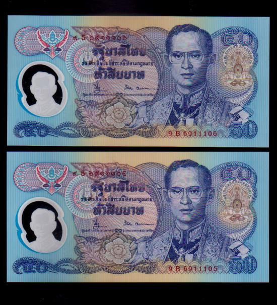 ## ธนบัตร 50 บาท ## กาญจนา ## เรียงเลข 2 ฉบับ ## UNC |
