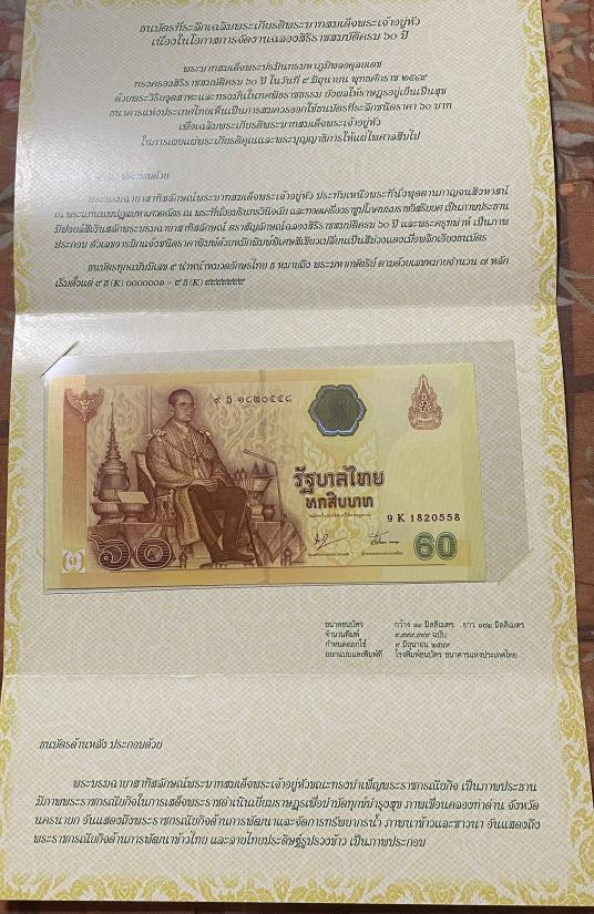ธนบัตรที่ระลึกเฉลิมพระเกียรติพระบาทสมเด็จพระเจ้าอยู่หัว เนื่องในโอกาสการจัดงานฉลองสิริราชสมบัติครบ 60 ปี |