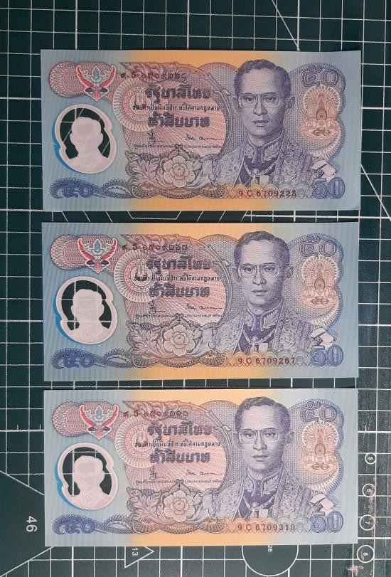 ## ธนบัตร 50 บาท ## กาญจนา ## ไม่ผ่านการใช้ ## 3 ฉบับ |