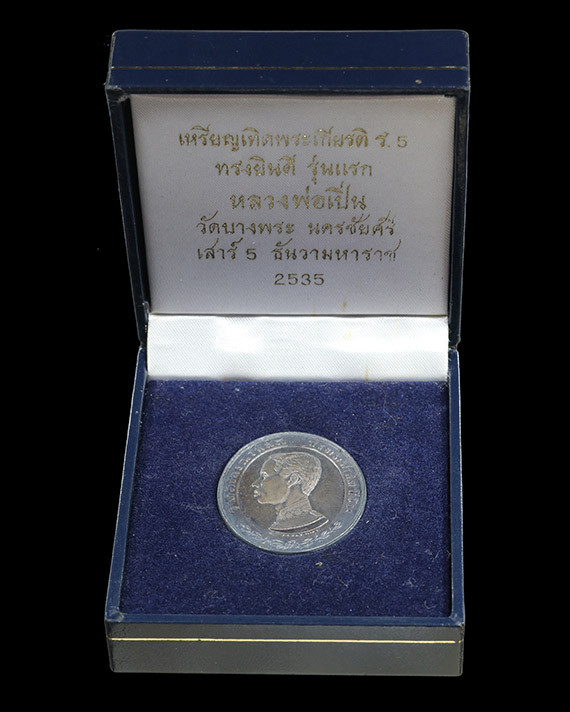 (จอง 2500 ) เหรียญเสร็จพ่อ ร.๕ รุ่นสร้างบารมี เนื้อเงินลงยา เดิมๆพร้อมกล่อง |