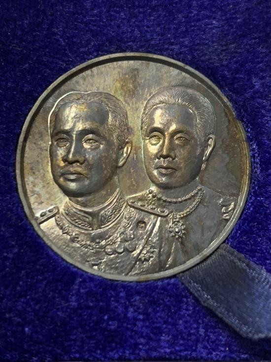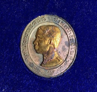 เหรียญแพรแถมเนื้อเงิน กระไหล่ทองรัชกาลที่9 นั่งบัลลัง หลังปีกาญจนาภิเษก |