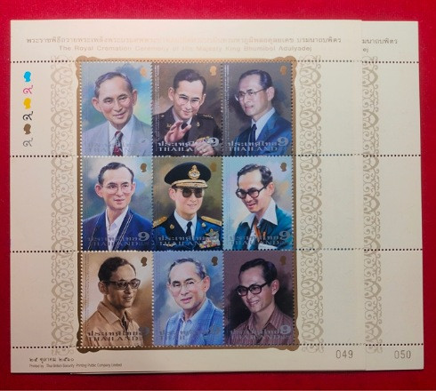 แสตมป์พระราชพิธีถวายพระเพลิงพระบรมศพ ร.9 สองชุด 6 แผ่น เลข 049-050 |