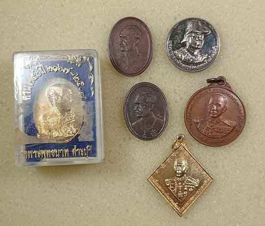 เหรียญร.5 4 เหรียญ + เหรียญกรมหลวงชุมพรฯ 2 เหรียญ |
