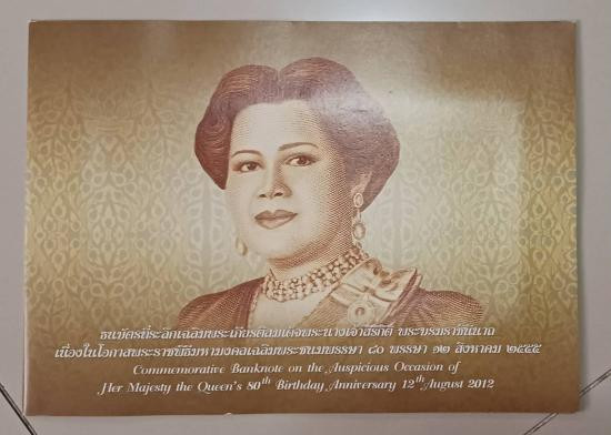ธนบัตรที่ระลึกเฉลิมพระเกียรติสมเด็จพระนางเจ้าสิริกิติ์พระบรมราชินีนาถเจริญพระชนม์พรรษา 80 พรรษา 12 สิงหาคม 2555 |