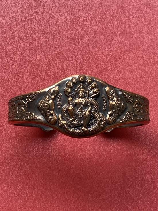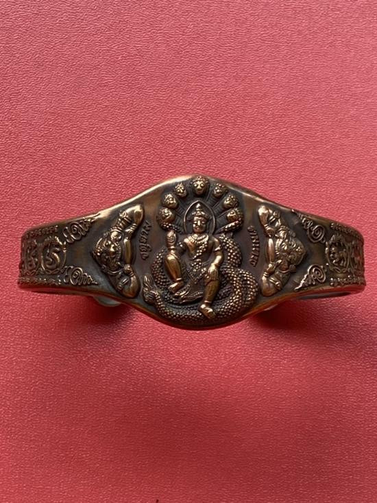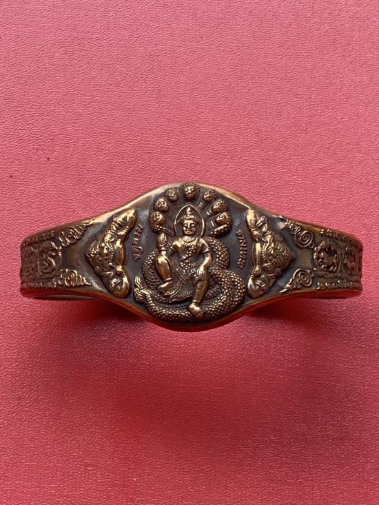 เคาะเดียวแดง กำไล องค์พ่อจตุคาม-รามเทพ รุ่นมงคลจักรวาล เนื้อสำริด เลข 424 |