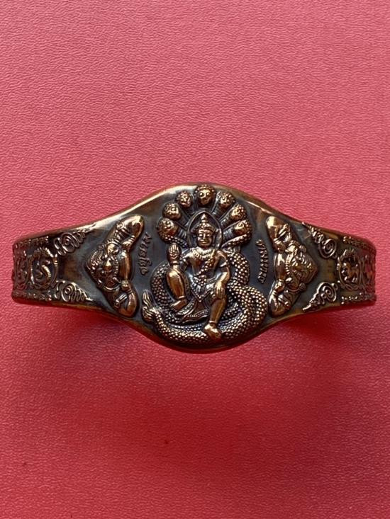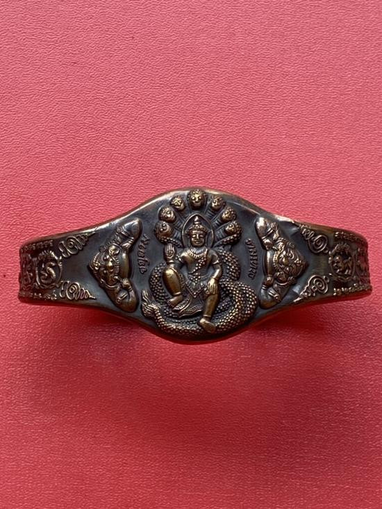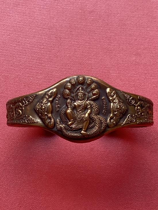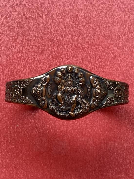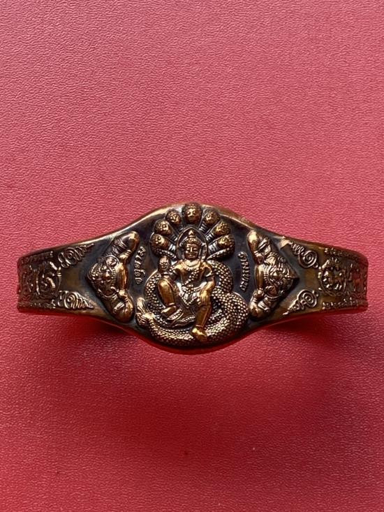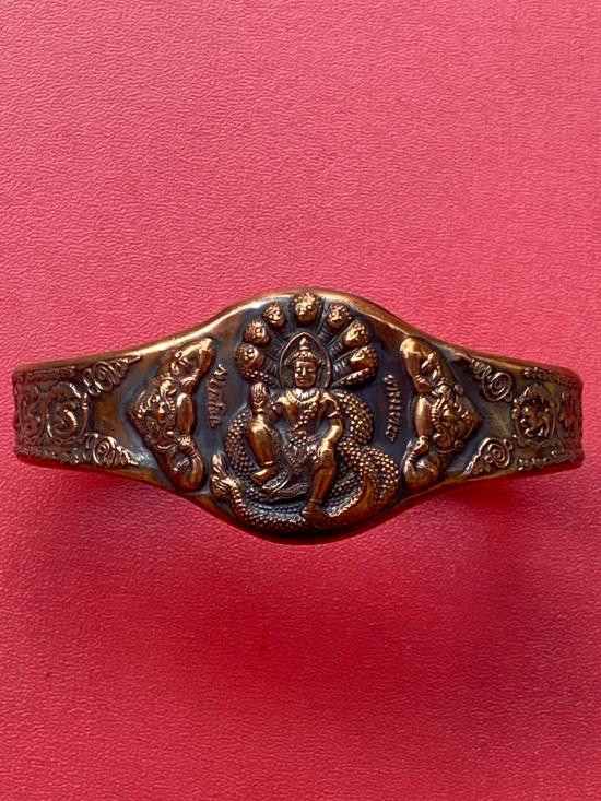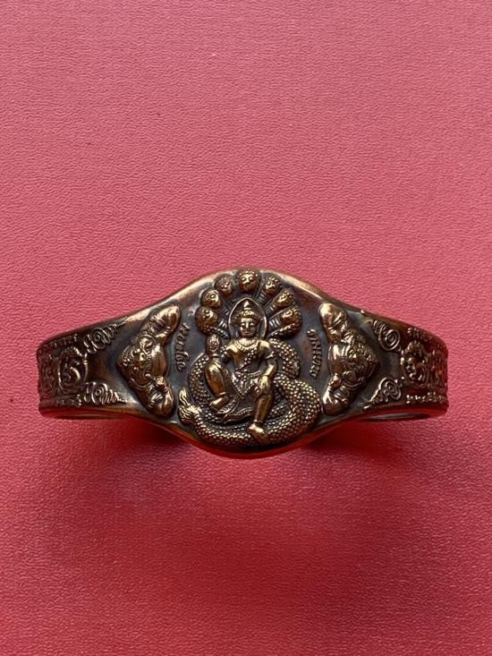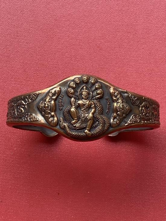 เคาะเดียวแดง กำไล องค์พ่อจตุคาม-รามเทพ รุ่นมงคลจักรวาล เนื้อสำริด เลข 585 |