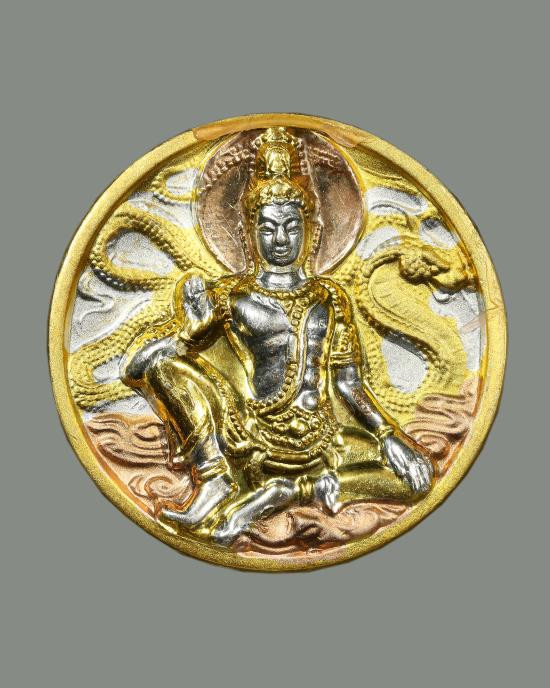 เหรียญพญาราหูคุ้มดวง ศรีวิชัยนามปี กะไหล่ทอง วัดถลุงทอง ปี44 |