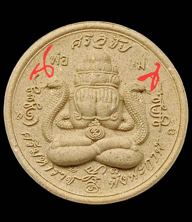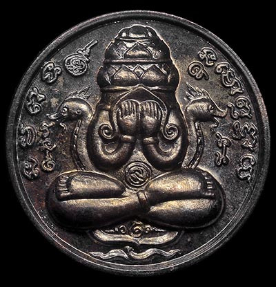 เหรียญปิดตาพังพะกาฬลงยาแดง รุ่น"หลักเมืองพุทธาคมเขาอ้อ ๔๙" จ.พัทลุง ปี ๒๕๔๙ |