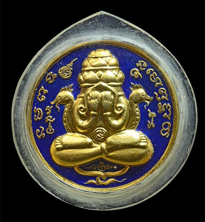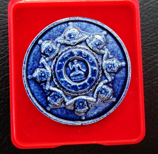 เหรียญพระปิดตาพังพะกาฬ ๙ รอบ ๙ พิธี ๑๐๘ ปี "กะไหล่ทองลงยาสีน้ำเงิน" |