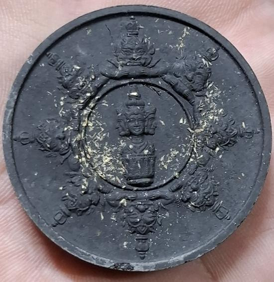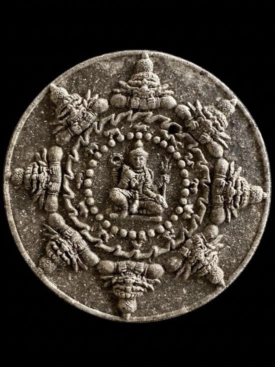 เหรียญปิดตาพังพระกาฬ รุ่น "หลักเมืองพุทธาคมเขาอ้อ 2549" เนื้อนวะโลหะพรายเงิน ตอกโค๊ด&หมายเลข กล่องเดิมครับ |
