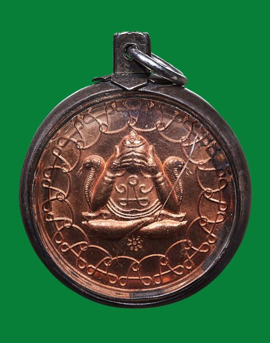 เหรียญพระปิดตา พังพะกาฬ รุ่นบูรณะเจดัย์ราย 45 เลี่ยมเงินผ่าหวาย ผิวไฟสวยเดิมๆ |
