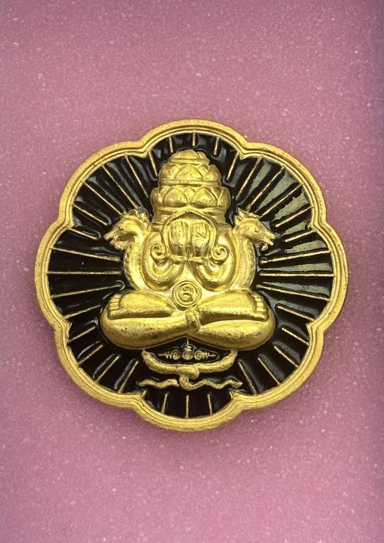 พระปิดตาพังพะกาฬ รุ่นหลักเมืองเขาอ้อ เนื้อกะไหล่ทองลงยาสีดำ พ.ศ. 2549 พร้อมบัตรรับรองสมาคม |