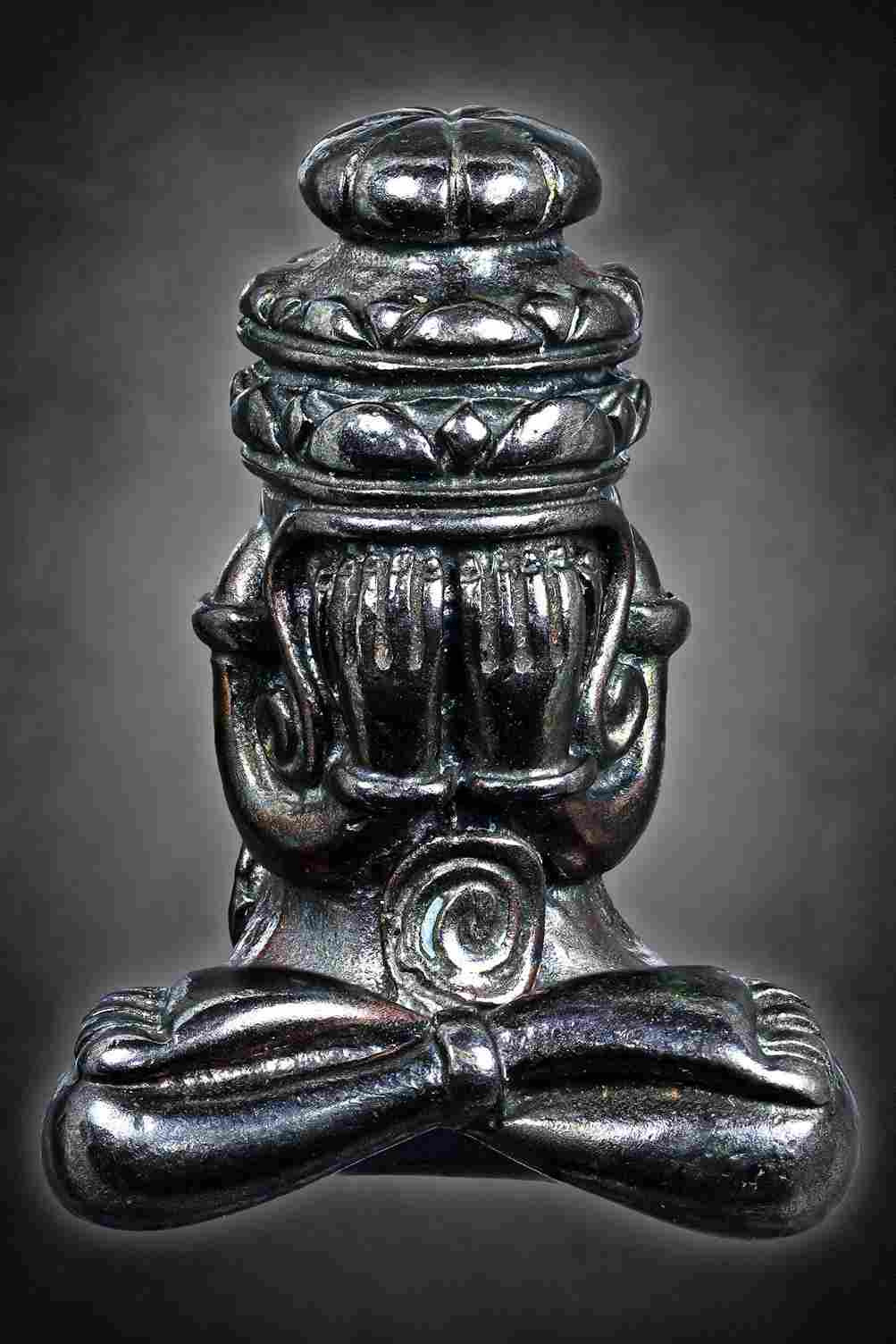จตุคามรามเทพเนื้อดำโรยไม้ตะเคียนศาลหลักเมือง รุ่น ดร.ไมตรี บุญสูง สร้างศาลเจ้าเจ่งอ๋อง จ.ภูเก็ต พ.ศ. 2547 |