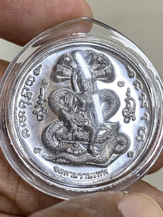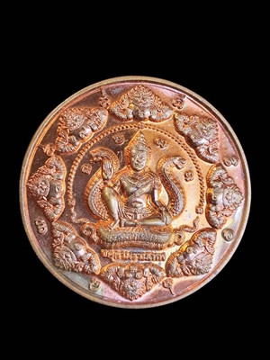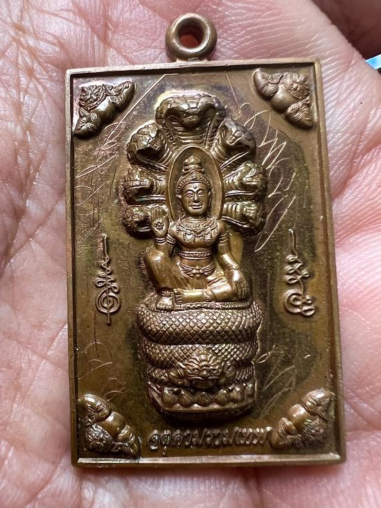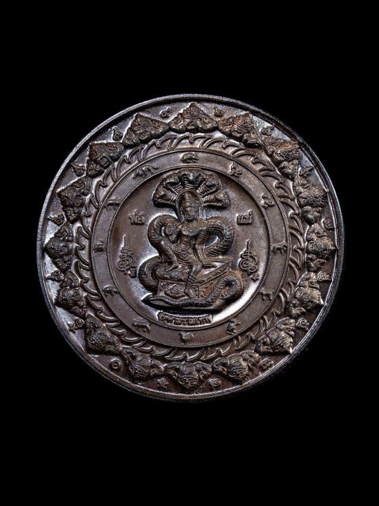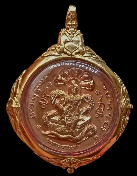 เหรียญดวงดี องค์พ่อนาคปรก7เศียร ปี32 เนื้อทองแดงบล๊อคทองคำนิยมสุดทำสามกษัตริย์มาสภาพสวยมาก |