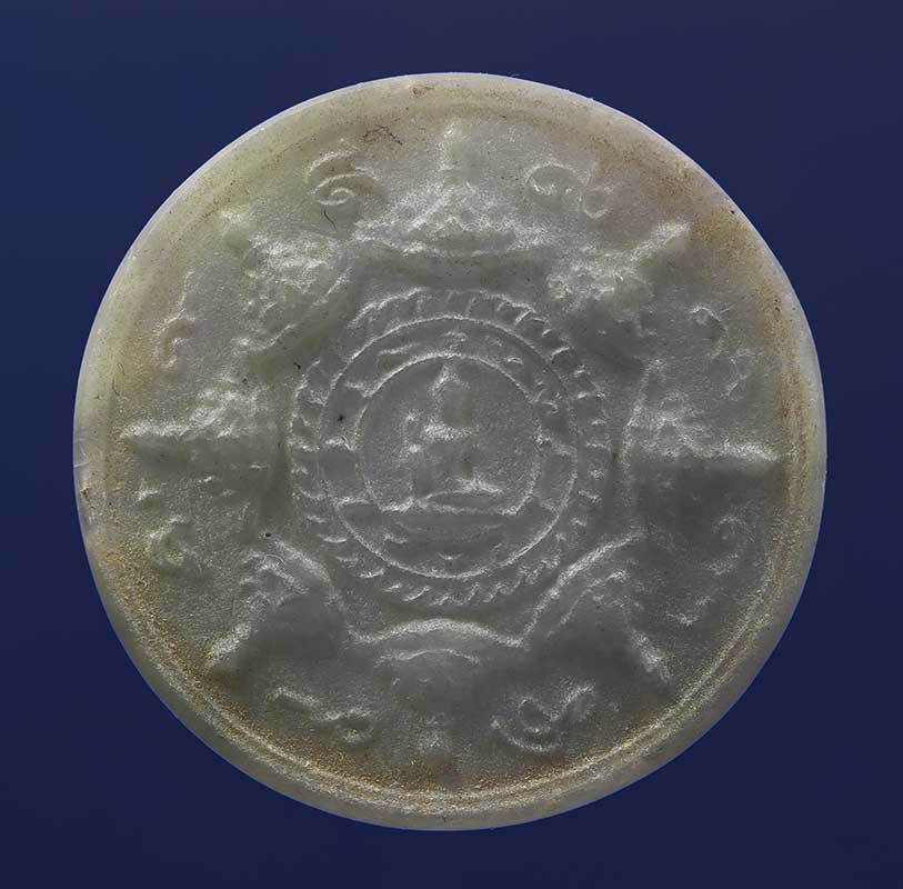 เหรียญเทพเจ้าไฉ่ซิ่งเอี้ย เทพเจ้าแห่งโชคลาภ ปางมหาเศรษฐีซัมภอ(เนื้อหยกแท้) รุ่นแรก หมายเลข3371 ปี48 (ไม่มีกล่องครับ) |