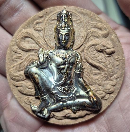 พระธนบดีศรีธรรมราช เทพเจ้าแห่งโชคลาภ ค้าขาย ร่ำรวย เนื้อเงินลงถม วัดชะเมา ปี 4 8 สวยๆ...%%% |