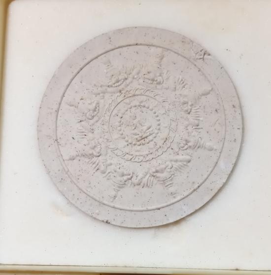 พระอุดมโชค ปฐมอรหันต์สุวรรณภูมิ ปี 2547 เนื้อว่านผสมผงไม้มงคล ผงไม้ค้ำฟ้า สีขาว ขนาด 5 ซม. |
