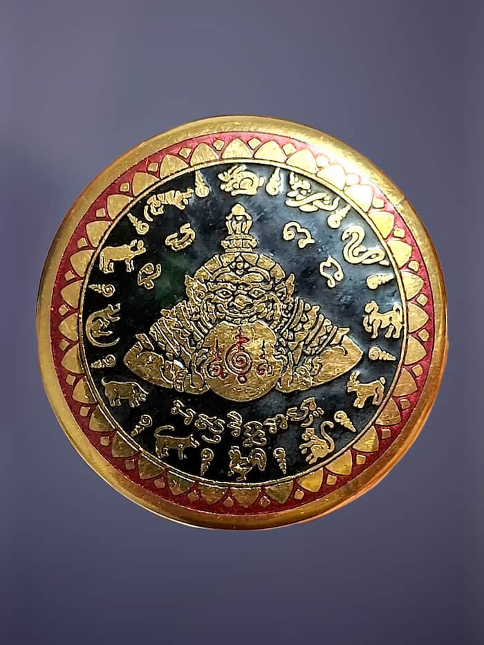 เหรียญพญาราหูคุ้มดวง ศรีวิชัยนามปี กะไหล่ทอง วัดถลุงทอง ปี44 |
