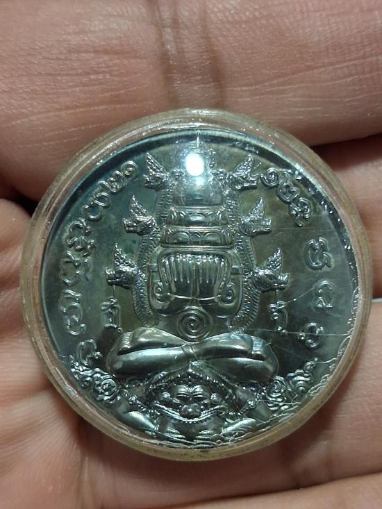 เงินไหลมา 1 4.8 cm เนื้อขาวโรยผงตะไบ หน้าองค์พ่อหลังพระธาตุใหญ่ พิมพ์นิยม เนื้อจัดมาก -150- |