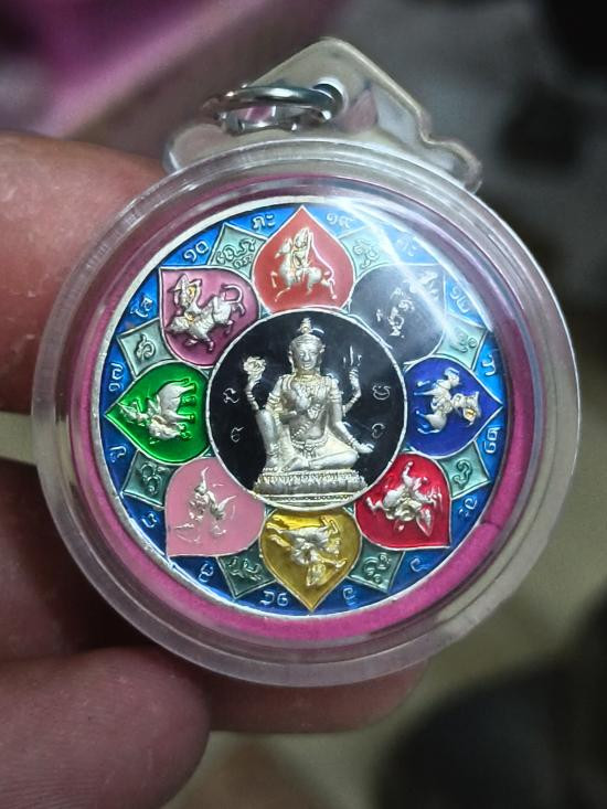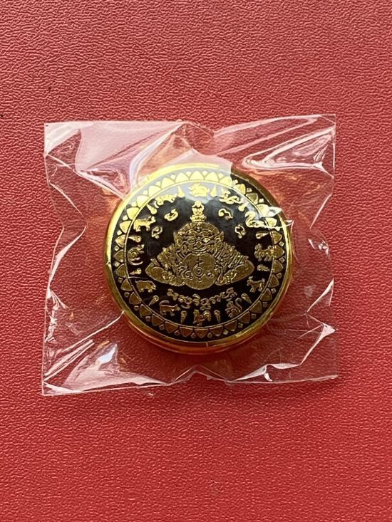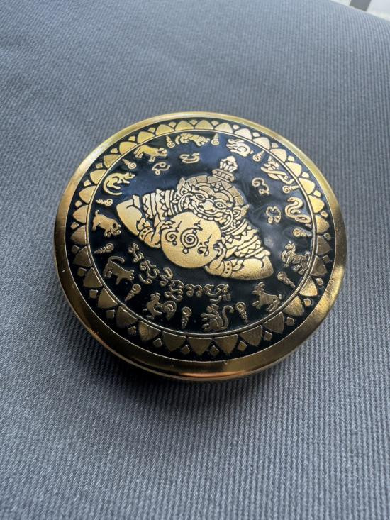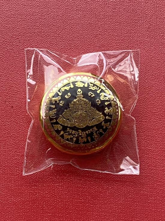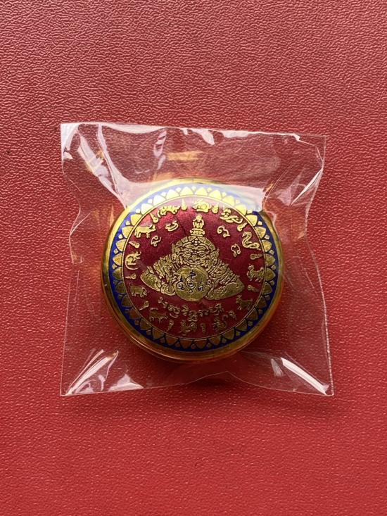 เคาะเดียวไวไว ตลับสีผึ้งพระราหู มหานิยมอุดมโชค จตุคามรามเทพ รุ่น มงคลจักรวาล ปี2549 พิมพ์เล็ก ขนาด3.2ซม ลงยาแดง ลงเบญจรงค์น้ำทอง สีผึ้งด้านในเดิมๆ |