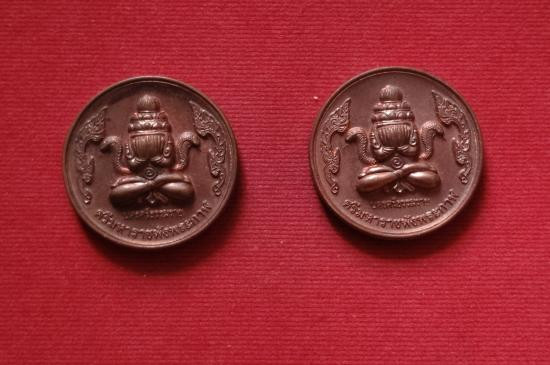 วัดใจ เคาะเดียวแดง เหรียญท้าวจตุคามและท้าวรามเทพรุ่นพระเสื้อเมือง-พระทรงเมือง วัดหน้าพระบรมธาตุ จ.นครศรีธรรมราช ปี 2548 เนื้อทองแดง |