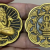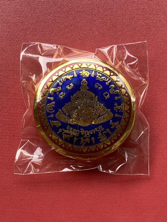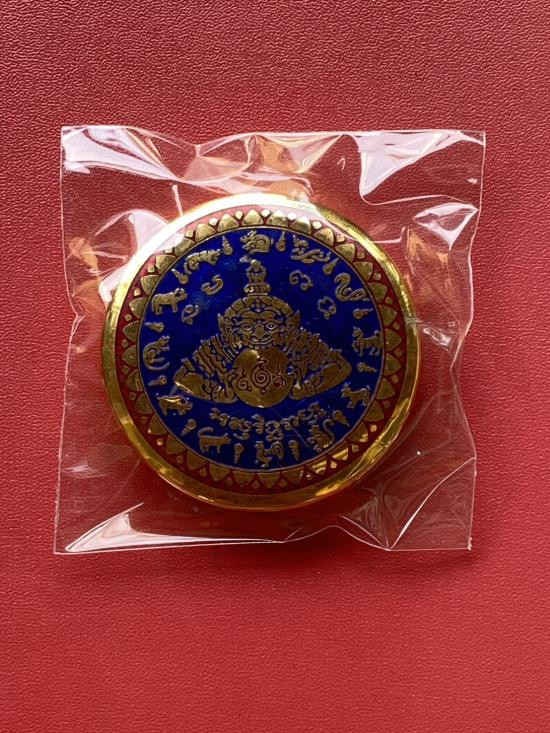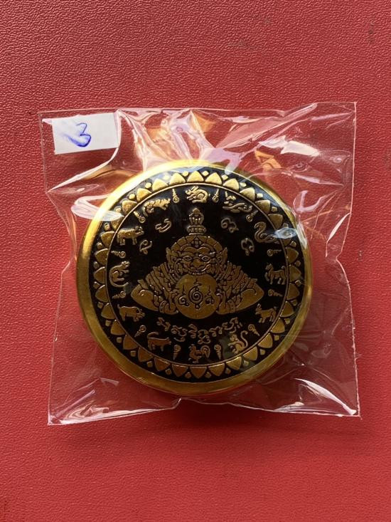เคาะเดียวแดง สีผึ้งพระราหู รุ่น มงคลจักรวาล เนื้อ โลหะชุบทองลงยาสีดำขอบดำ ขนาด5ซม |