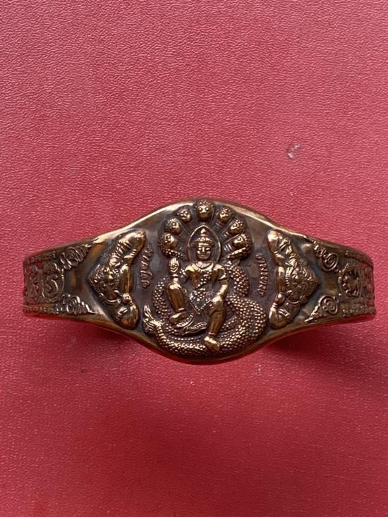 เคาะเดียวแดง กำไล องค์พ่อจตุคาม-รามเทพ รุ่นมงคลจักรวาล เนื้อสำริด เลข 596 |