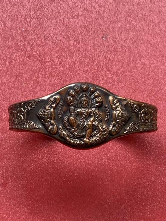เคาะเดียวแดง กำไล องค์พ่อจตุคาม-รามเทพ รุ่นมงคลจักรวาล เนื้อสำริด เลข 574 |
