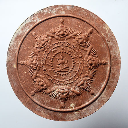 พระผงสุริยันต์ จันทรา รุ่น 2 ปี 49 ท่านสรรเพชร จัดสร้าง รูปแบบย้อนยุค เนื้อผงว่านแดง หลัง ยันต์เอียง |