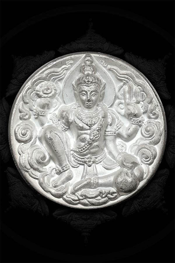 รูหล่อประภามณฑลจตุคามรามเทพ เนื้อเงิน รุ่นอัครมหาเศรษฐี หมายเลข ๕๘ พร้อมกล่องเดิม จำนวนการสร้าง 399 องค์