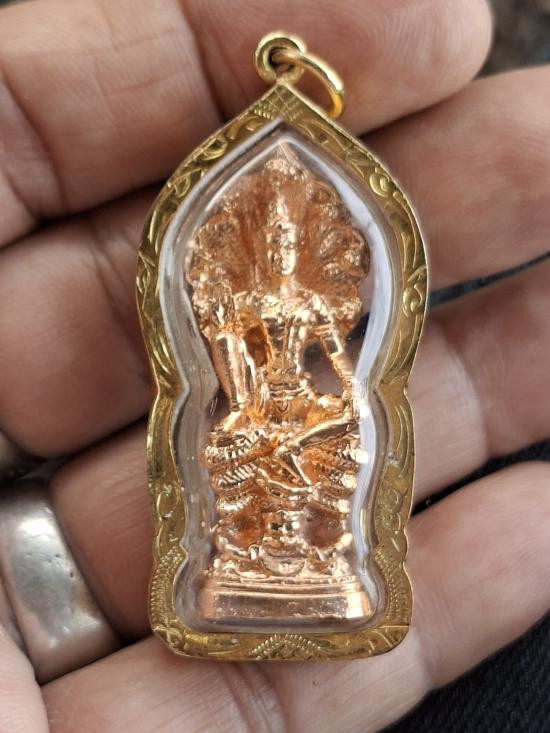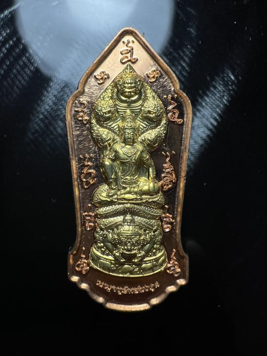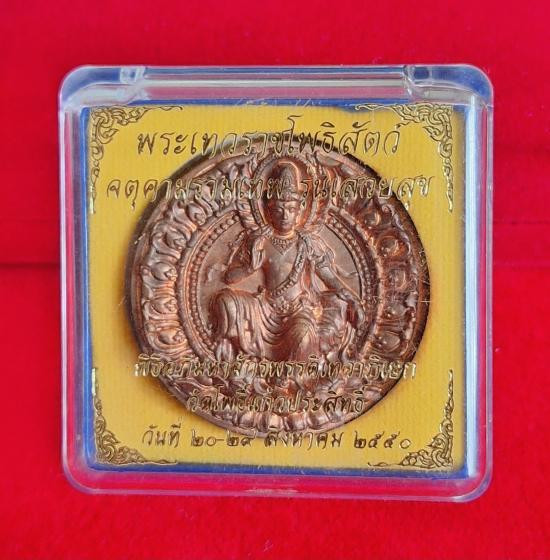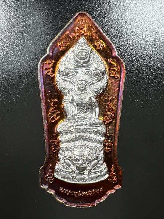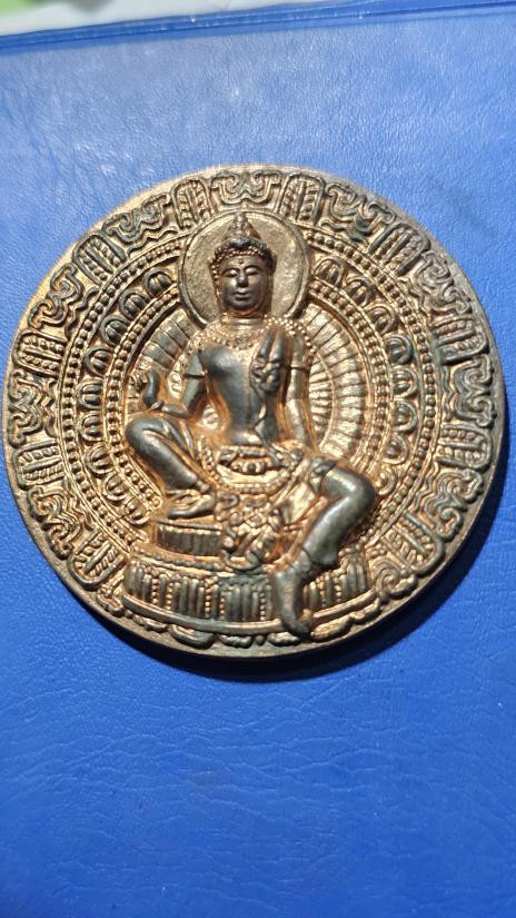 เหรียญพระโพธิสัตว์พังพกาฬ ดวงดี วัดพระมหาธาตุวรวิหาร จ.นครศรีธรรมราช เนื้อทองแดงผิวรุ้งลงยาน้ำเงิน หมายเลข 105