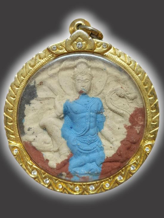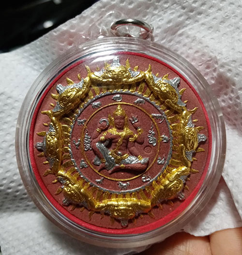 139.... รุ่น "บารมีศรีวิชัย" เนื้อผงว่าน ลายเสือ หน้ากากชุบทอง 5.5 ซม. กรรมการ สวยเดิมกล่องเดิม