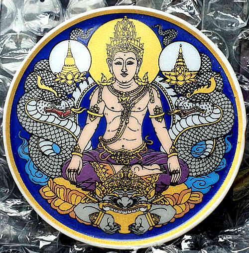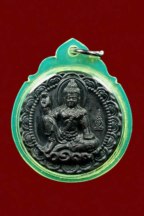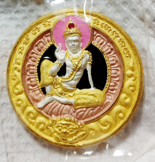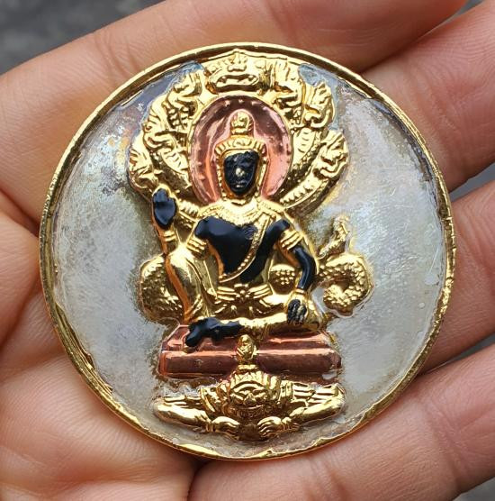 เหรียญพระโพธิสัตว์พังพกาฬ ดวงดี วัดพระมหาธาตุวรวิหาร จ.นครศรีธรรมราช เนื้อทองเหลืองรุ้งลงยาธงชาติ หมายเลข ๙๓