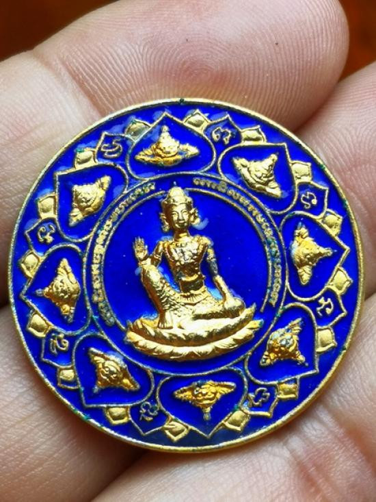 เหรียญจตุคาม รามเทพ เนื้อทองแดงกะไหล่ทองลงยาน้ำเงิน รุ่นหลักเมืองมหามงคล 50 ขนาด 3.2 ซม. พร้อมกล่องเดิมตามรูป ราคาเบาๆ