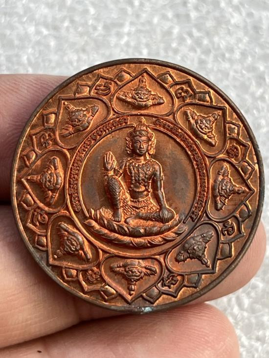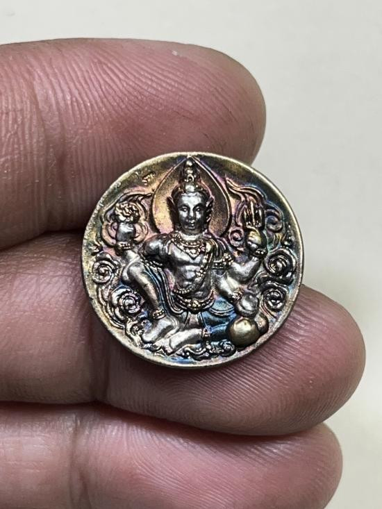 เหรียญนวะโลหะพระเทวราชโพธิสัตว์ จตุคามรามเทพ รุ่นขุมทรัพย์สี่แผ่นดินขนาด 2.2 ซม.ปี 2550 |