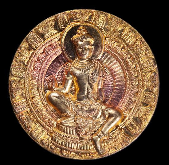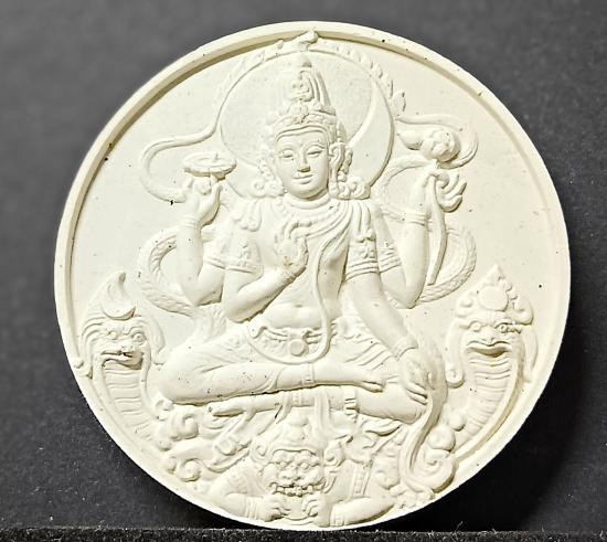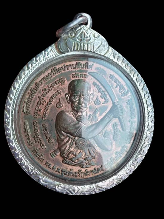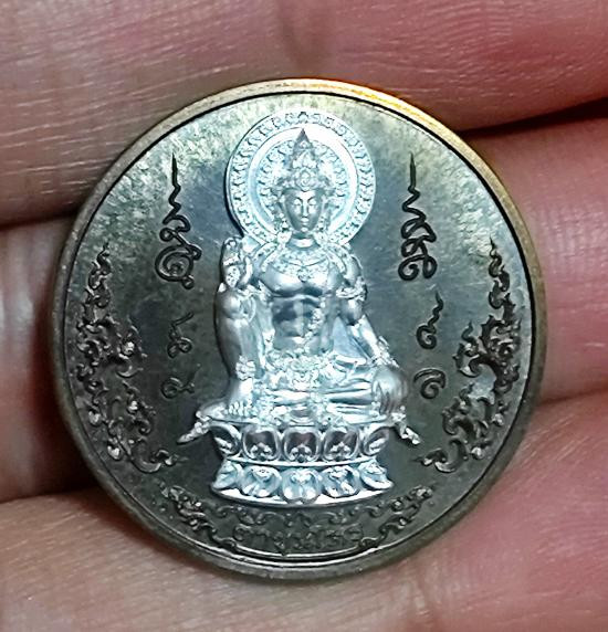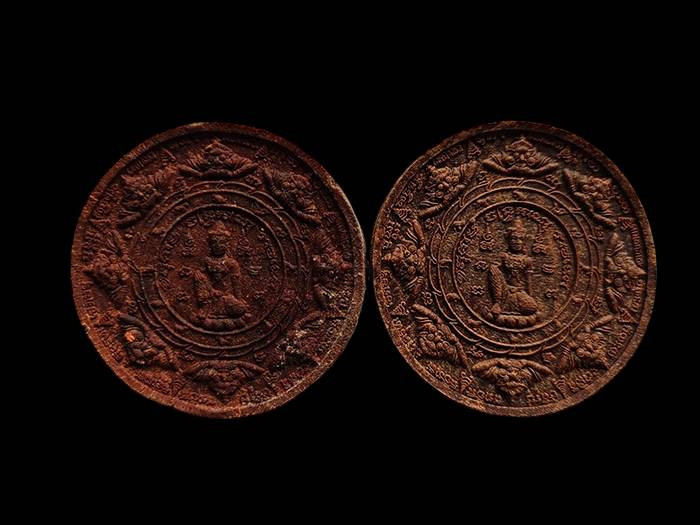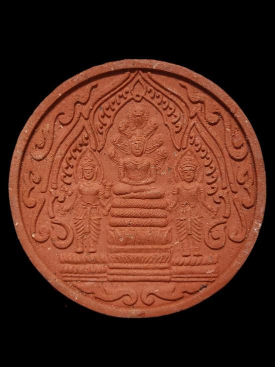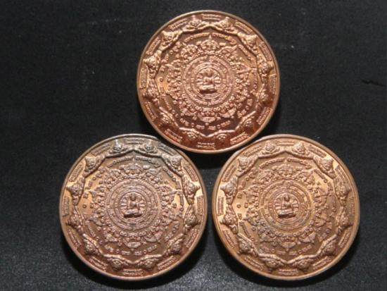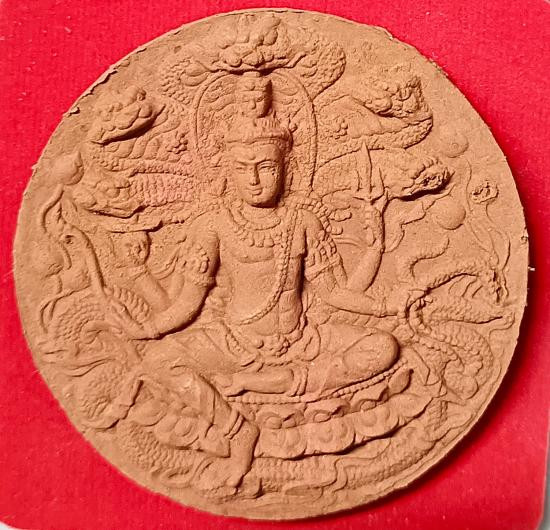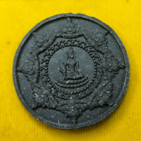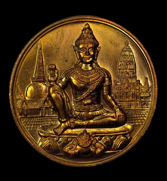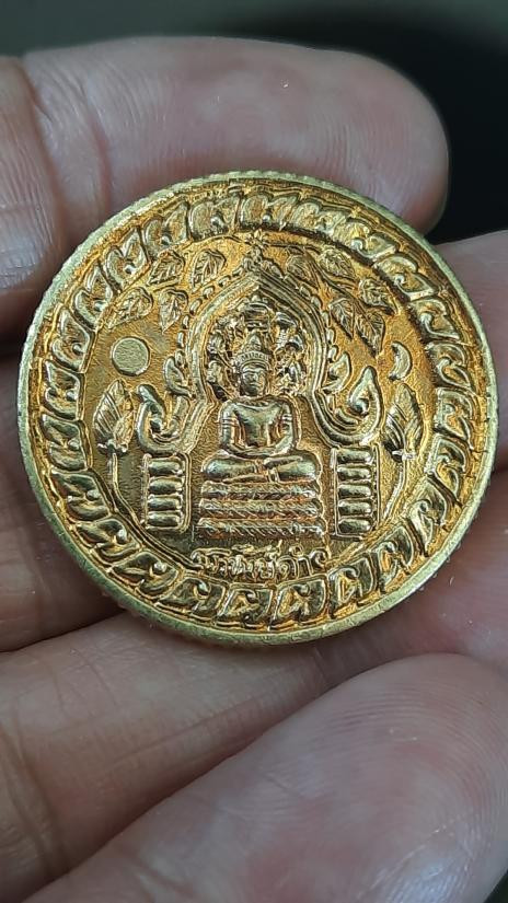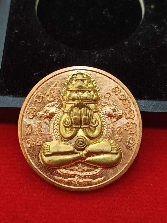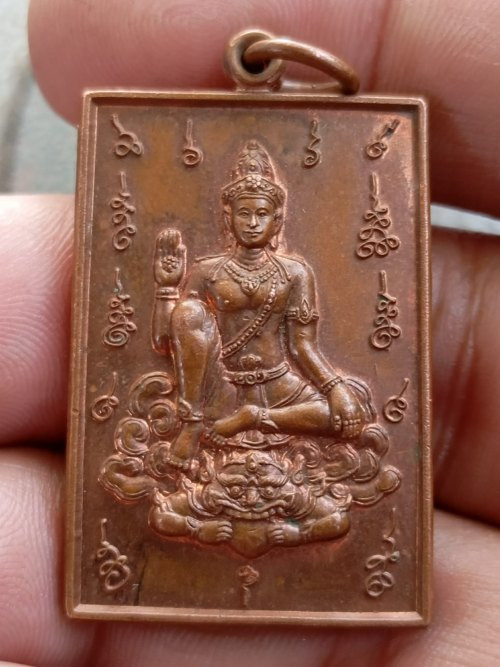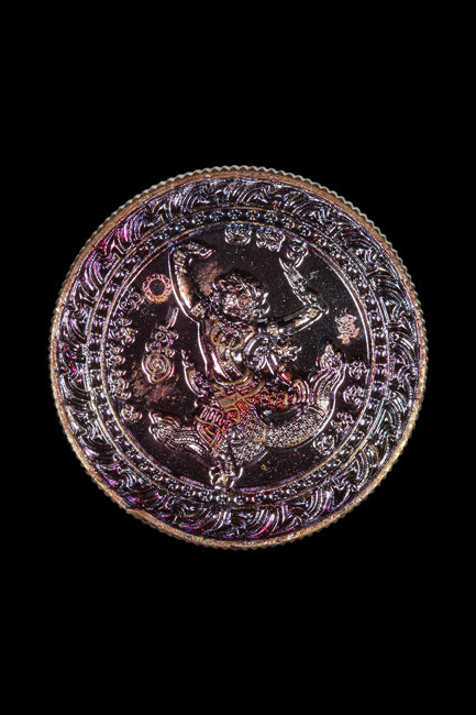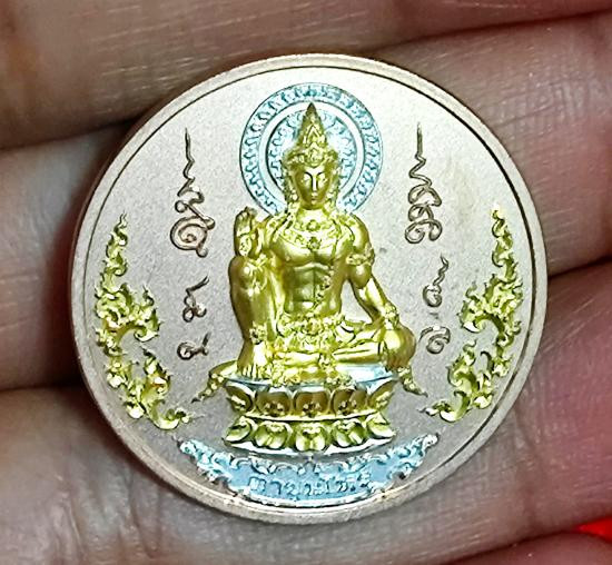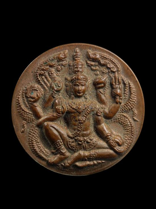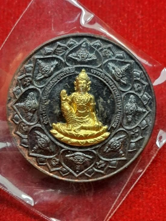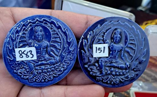 เหรียญพระโพธิสัตว์พังพกาฬ ดวงดี วัดพระมหาธาตุวรวิหาร จ.นครศรีธรรมราช เนื้อทองแดงผิวรุ้งลงยาน้ำเงิน หมายเลข ๑๐๕
