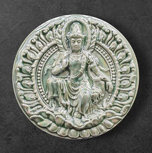 องค์พ่อจตุคาม รามเทพ รุ่น เสวยสุข เนื้อกระเบื้องเคลือบสีเขียวมุก ขนาด 5 ซม. กล่องเดิม