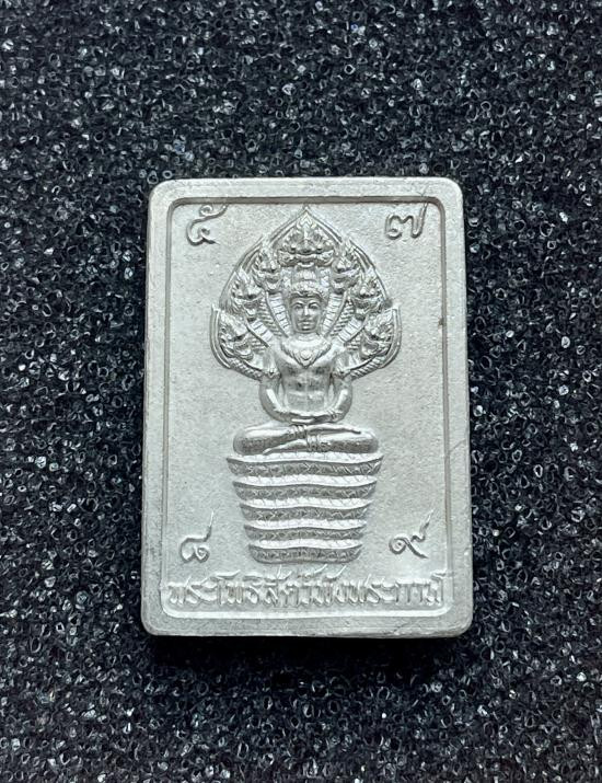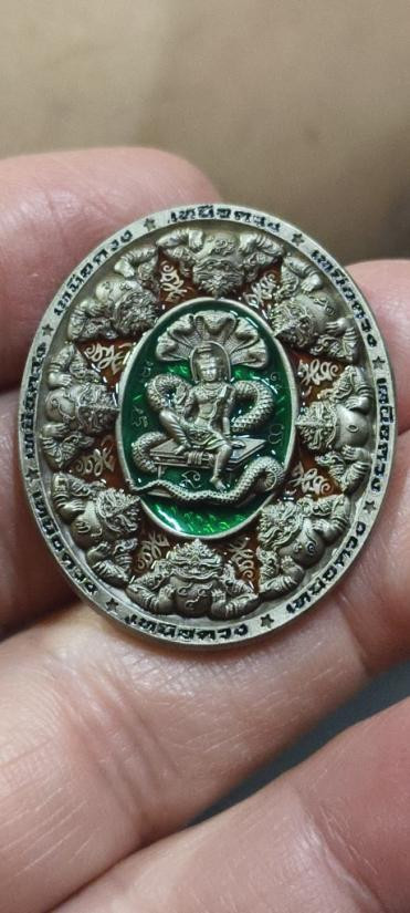 เหรียญพระโพธิสัตว์พังพกาฬ ดวงดี วัดพระมหาธาตุวรวิหาร จ.นครศรีธรรมราช เนื้อทองเหลืองรุ้งลงยาธงชาติ หมายเลข ๙๓