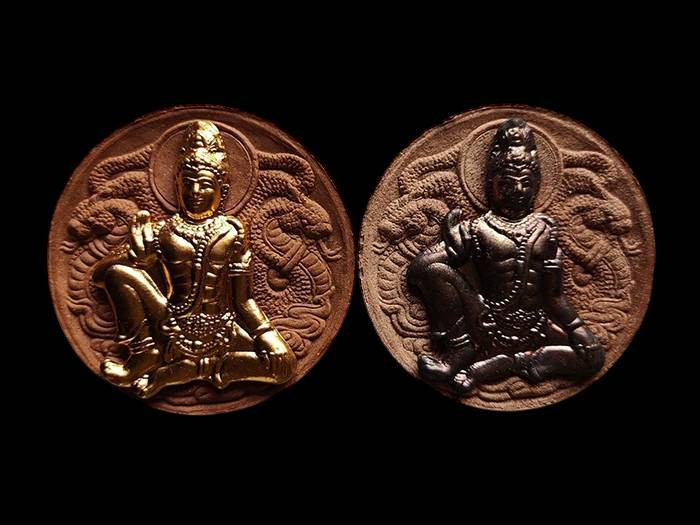 2 องค์ (หน้ากากเงินเ+หน้ากากทอง เทวฤทธิ์ ศาลหลักเมืองนครศรีธรรมราช จตุคาม รามเทพ รุ่นโคตรเศรษฐีมีกำไร พระผงว่าน เนื้อไม้เทพทาโร ปี2550 5.5 ซ.ม...วัดใจ120บาท