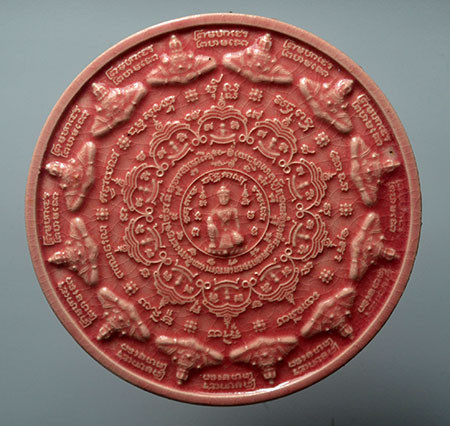จตุคามรามเทพ รุ่น มหาเทวโพธิสัตว์สุวรรณภูมิ ปี 2550 กระเบื้องเคลือบสีชมพู พิเศษ องค์พ่อ 2 หน้า