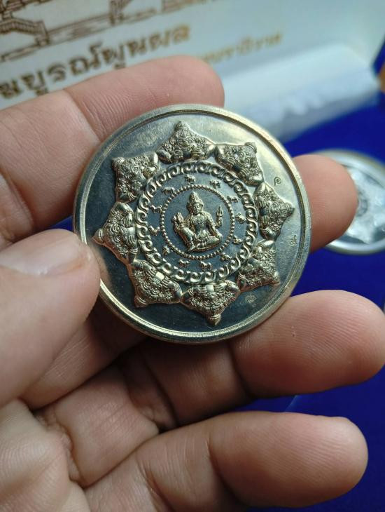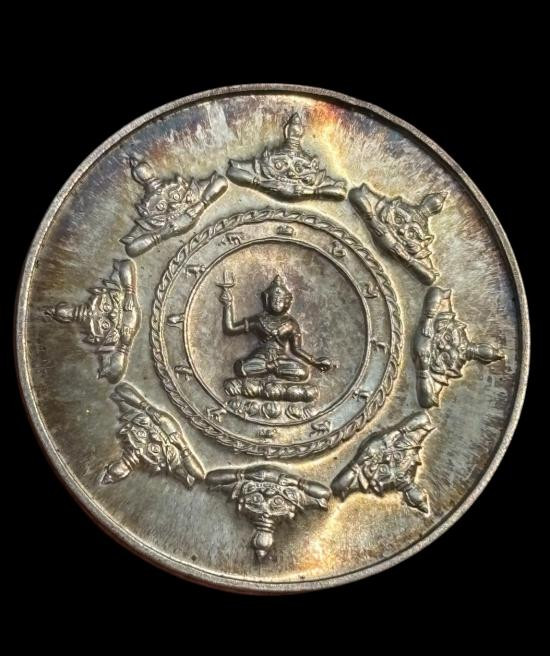 เหรียญพระโพธิสัตว์พังพระกาฬ รุ่น ฝ่าดวง "เนื้อเงินหล่อในพิธี" พิธีเทวาภิเษก ณ หลักเมืองนครฯ |
