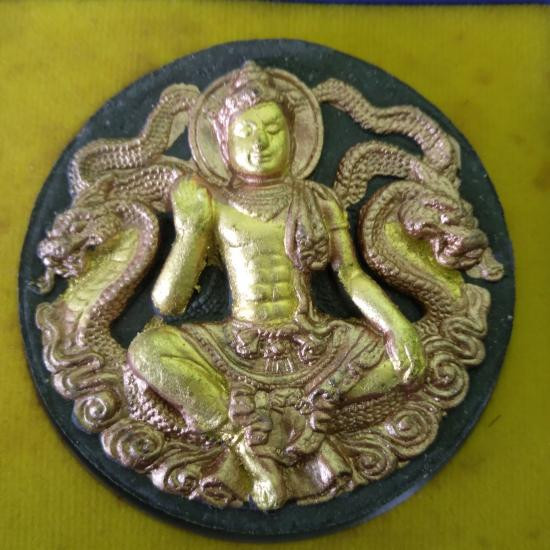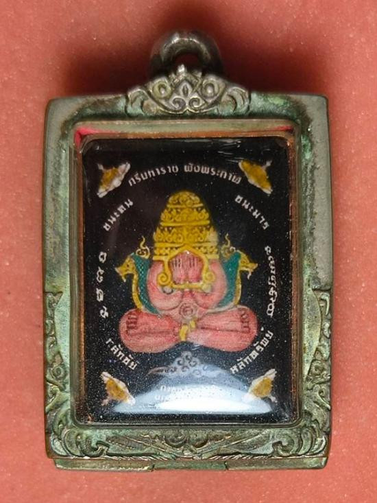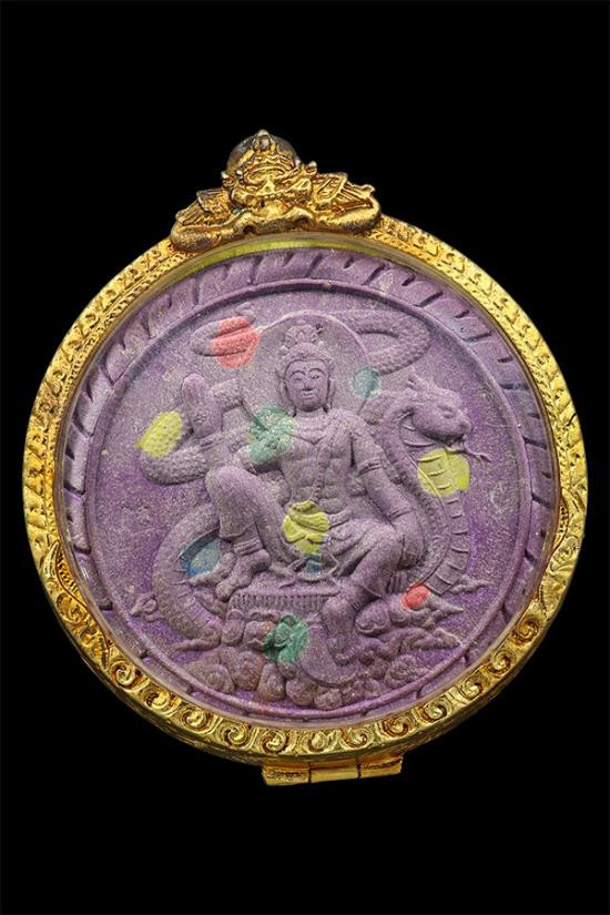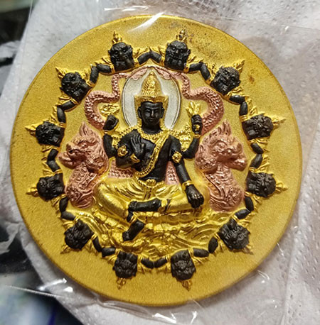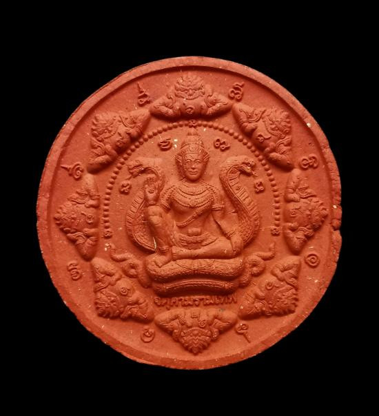 พระเทวราชโพธิสัตว์จตุคามรามเทพ - พระพิฆเณศวรเทพเจ้าแห่งความสำเร็จ เนื้อว่านแดงปัดทอง รุ่น อภิมหาสมบัติวัดโคกเนียน จังหวัดพัทลุง วิทยาลัยช่างศิลป์นครศรีธรรมราช สร้างปี 2550 |