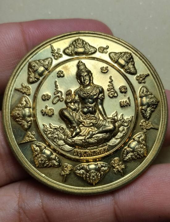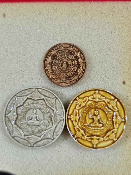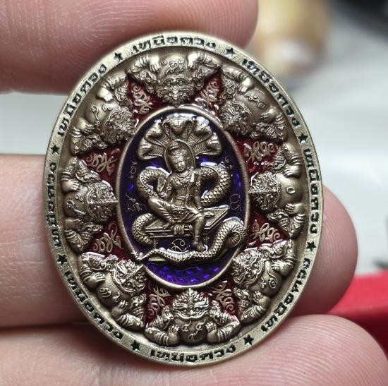 159.........เหรียญบาตรน้ำมนต์ รุ่น"เฮง รับทรัพย์" ปี 2550 งาน จิวเวอรี่ 4 k ลงยาชมพู 5.5 ซม. สวยเดิมกล่องเดิม ออกแบบสวยงามครับ รุ่นนี้ |