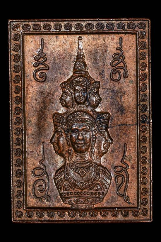 เหรียญแสตมป์สี่เหลี่ยม จตุคามรามเทพหลังราหู รุ่น มหาราช มหาลาภ เนื้อทองแดงผิวไฟ |