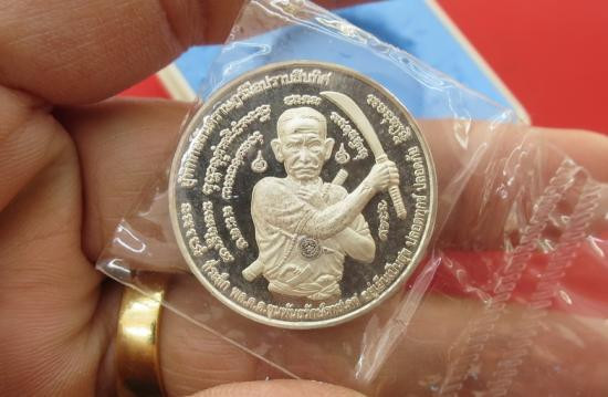 เหรียญคันฉ่องผ่าตะวันเหนือดวง มีจาร ท่านเจ้าคุณโชติครับ วัดพุทไธศวรรย์ เนื้อเงิน พิมพ์ใหญ่ ขนาด 4.9 ซ.ม. ปี 50 |