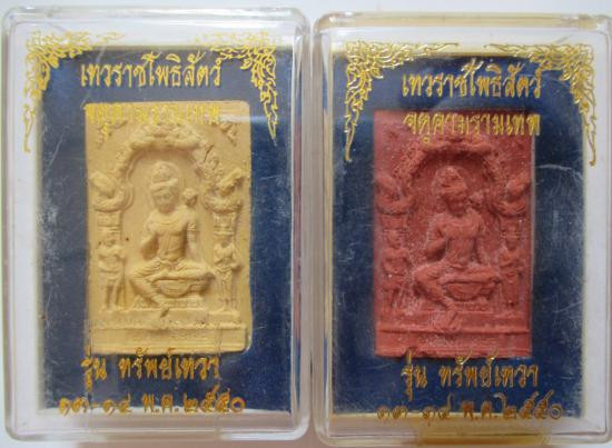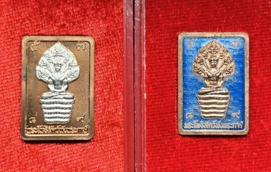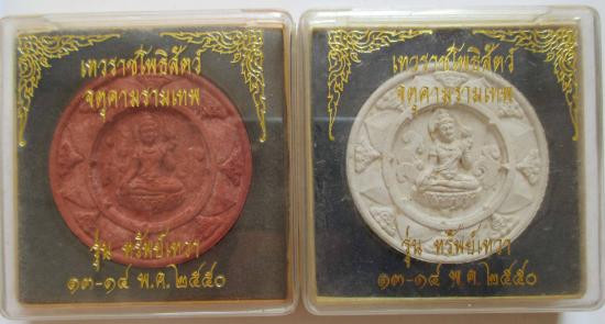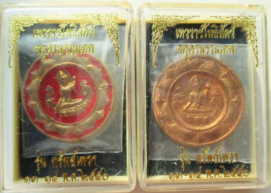 รุ่นทรัพย์เทวา เหรียญเนื้อลงยาสีแดง+เนื้อทองแดง 3.2ซม.