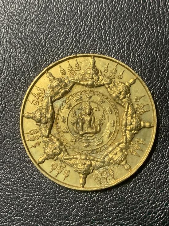 รุ่นทรัพย์เทวา เหรียญเนื้อเหลืองเทวราชผสมชนวน 3.2ซม.