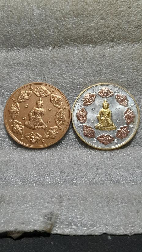 รุ่นทรัพย์เทวา เหรียญเนื้อสามกษัตริย์+เนื้อทองแดง 3.2ซม.