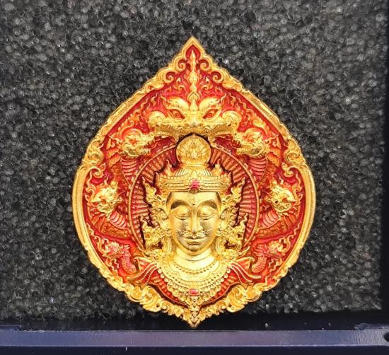 เหรียญหล่อพุทธศิลป์ จตุคาม รุ่นดวงดี159 เนื้อชุบทองลงยาส้ม No.๓๓ พร้อมกล่องเดิม ขนาดเหรียญสูง 2.8 cm.