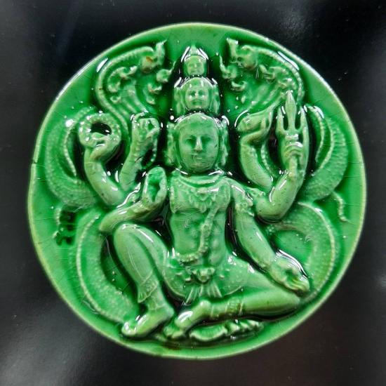 วัดใจเคาะเดียว......100.......จตุคามรามเทพ รุ่นเก้าหน้ามหาโชคมหาเศรษฐี วัดอ้ายเขียว เนื้อกระเบื้องเคลือบเขียว ปี 2550 ขนาด 5.2 เซนติเมตร พร้อมกล่อง |